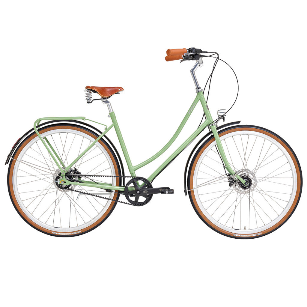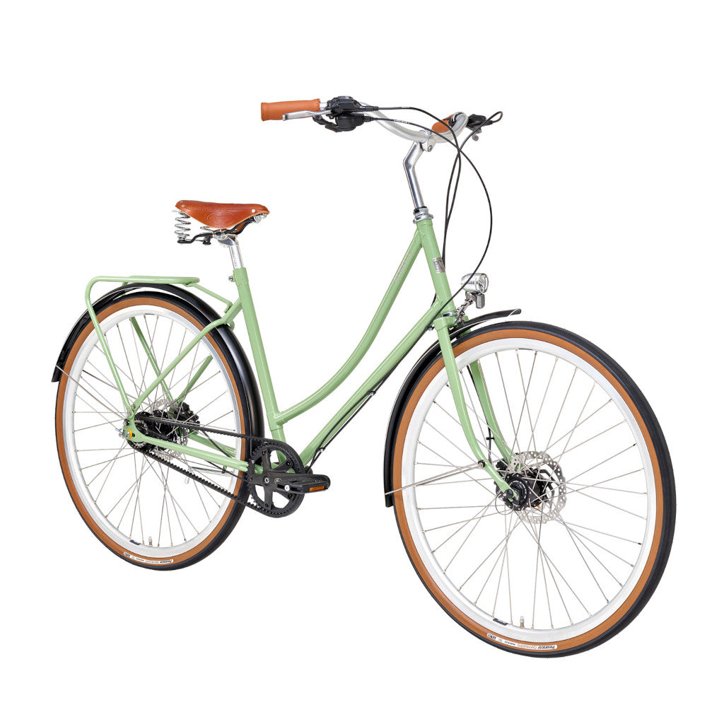 Ef þú ert að leita eftir klassísku hjóli með nútímalegum búnað þá er Ophelie hjólið fyrir þig. Hjólið kemur með átta innbyggðum gírum, vökvadiskabremsum, fram og afturljósi, brettum, bögglabera, Brooks Cambium hnakkur og handföng. Hjólið er með belti í stað keðju.