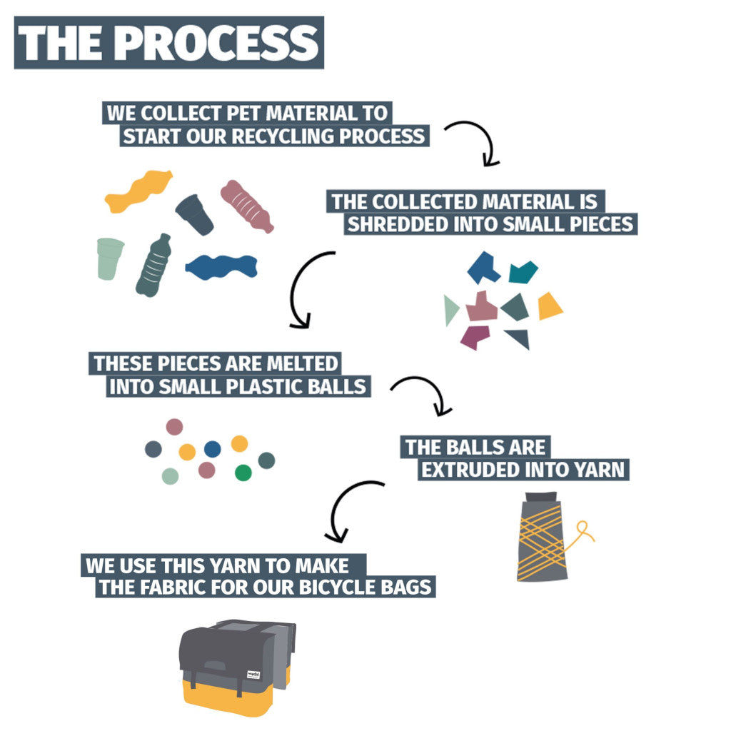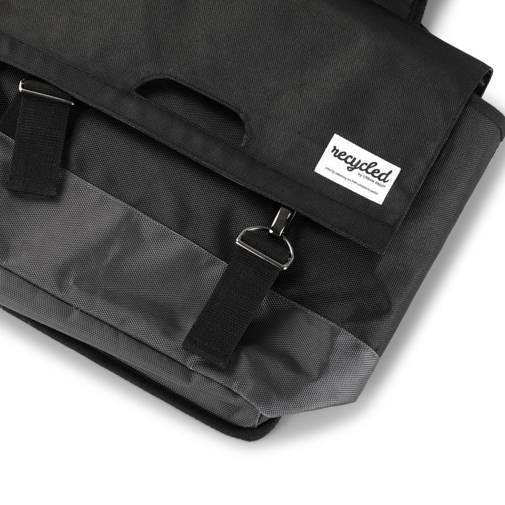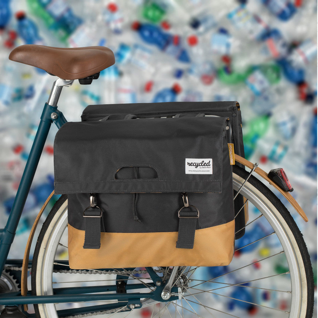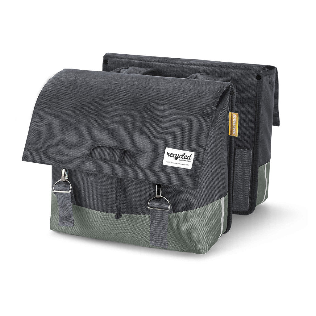 Sterk 40L hjólataska með styrktri bakhlið og botni. Hjólataskan er gerð úr endurunnu PET efni (RRET). Taskan er með tvö stór hólf, hvert hólf 20L samtals 40 lítra.
