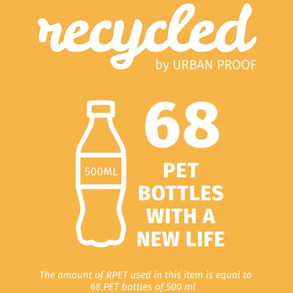 Taskan er gerð úr vatnsheldri RPET og er með vatnsheldu fóðri að innan til að vernda eigur þínar.