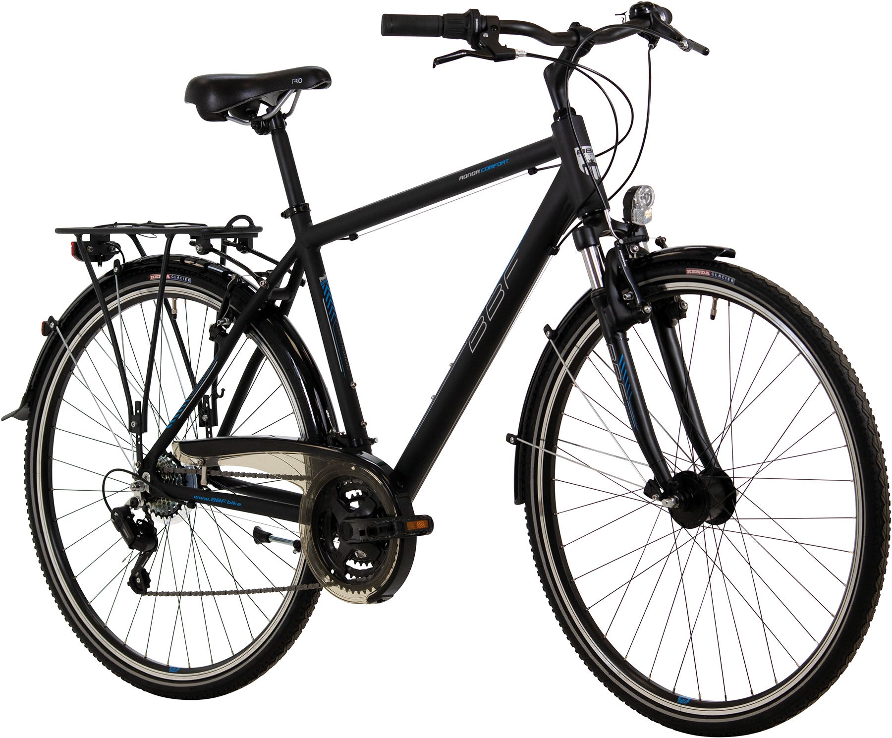 Hjólið kemur með framdempara, ljósum, brettum, standara, bögglabera, bjöllu og drifbúnað frá Shimano.