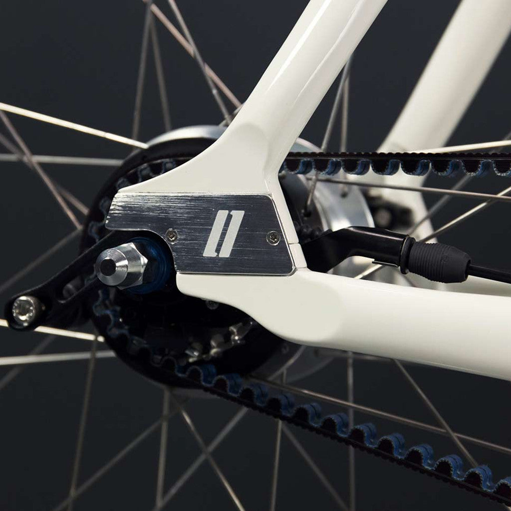 Þú getur valið á milli 8 eða 11 gíra (innbyggt í nafi) og fjögra lita. Hólar, hæðir eða brekkur er engin fyrirstæða með annað hvort 8 eða 11 gíra. Drifbúnaðurinn er belti og hjólaferðin verður hljóðlátari og minnkar viðhald miðað við venjulega keðju. Einnig þarftu ekki að hafa áhyggjur af óhreinka eða fá bletti í buxur vegna keðju.