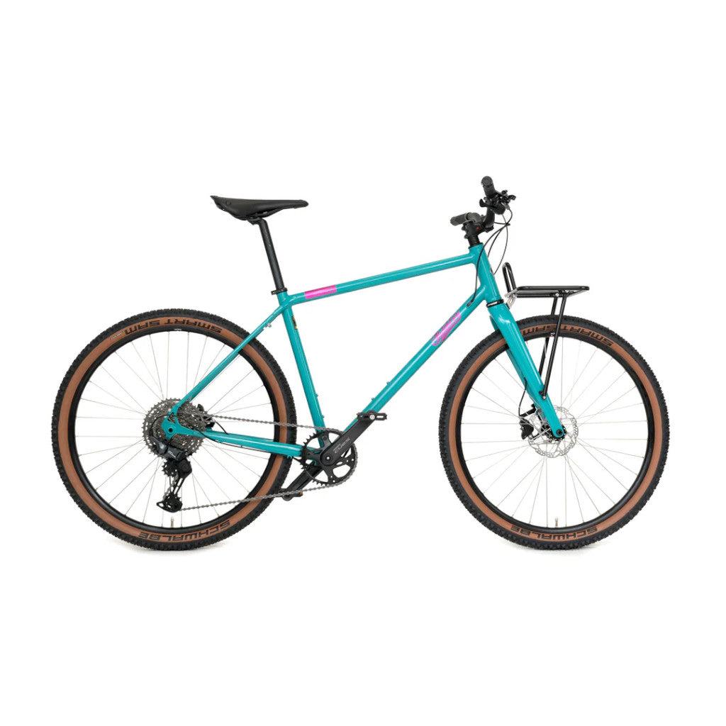 Handsmíðað í Englandi úr hágæða Reynolds stáli (725, 631 and 525), það er létt og endingargott. Með breiðu gírhlutfalli, öflugum vökvadiskabremsum, fjallahjóladekkjum og léttum koltrefjagaffli. Hjólið býður upp á þægilega og ánægjulega ferð, sama hvert leiðin liggur.