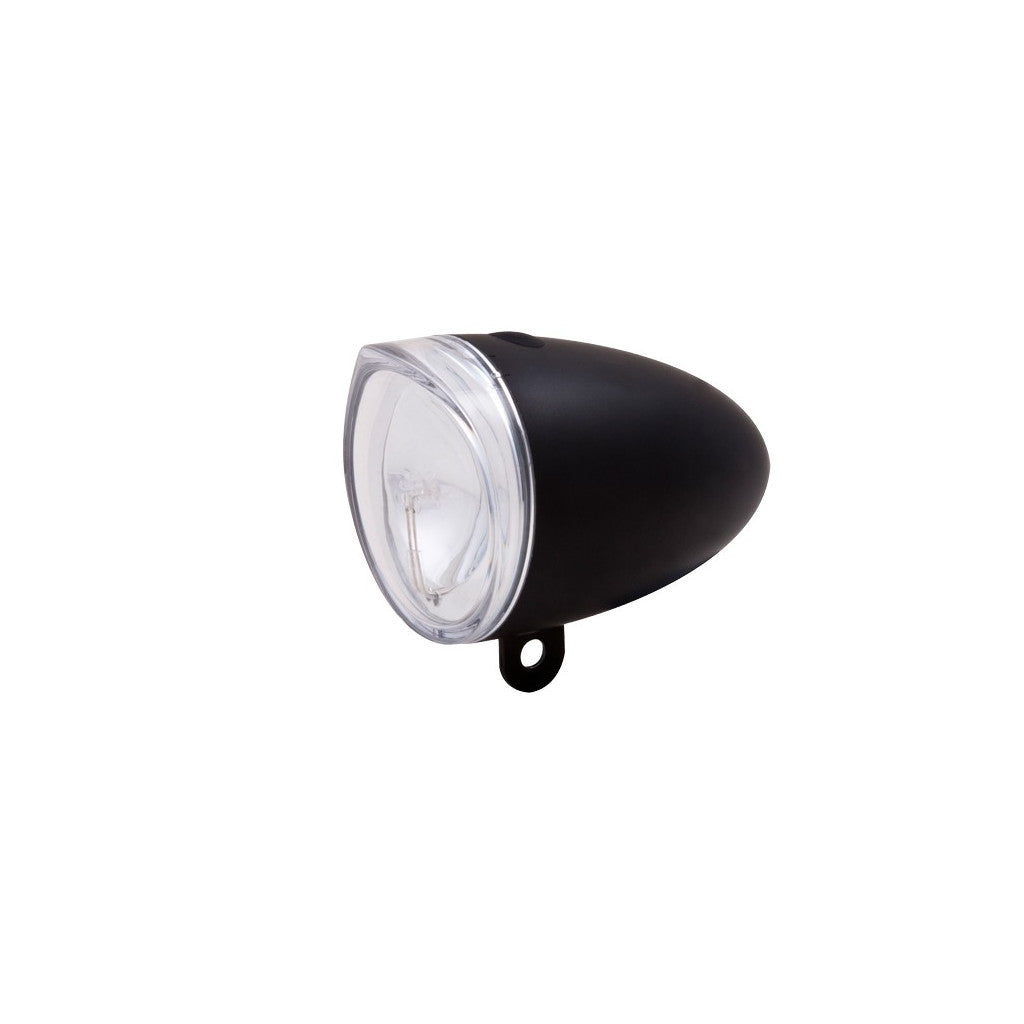 Framljós með LED peru. Ljósið er í retró stíl og setur skemmtilegan svip á borgarhjólið. Ljósið gengur fyrir batteríum sem auðvelt er að skipta um. Festingar fyrir hjólið fylgja með.