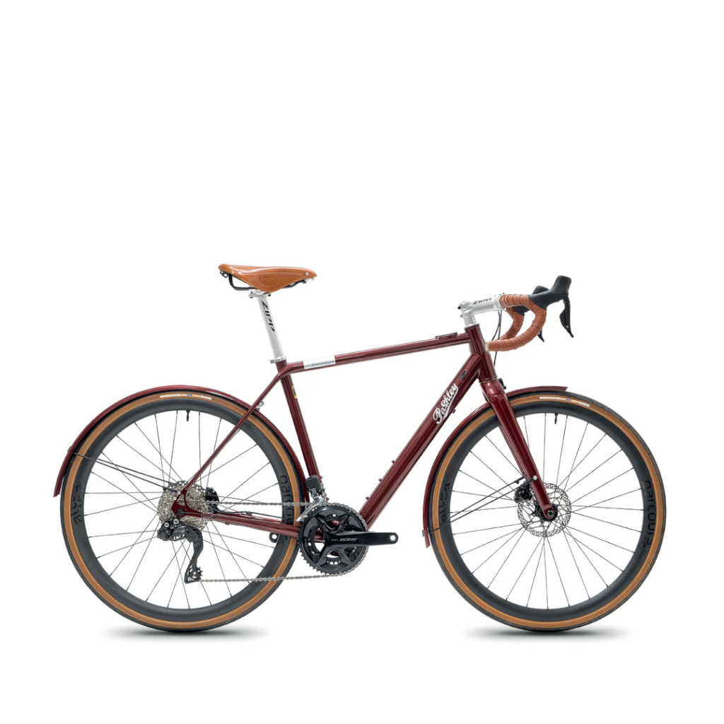 Í boði eru þrír litir og þrír mismunandi gírbúnaður frá Shimano (105, 105 rafmagnsskiptir og Ultegra rafmagnsskiptir). Vökvabremsur eru á hjólinu, 700x35 dekk frá Panaracer Gravel King semi slick, Brooks Cambium hnakkur og stýrisvafningar.