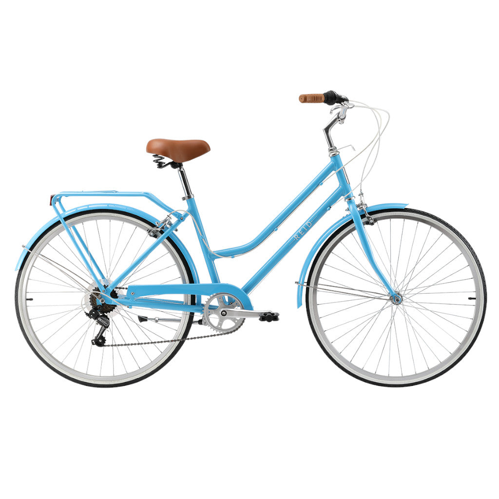 Reid Ladies Vintage reiðhjól er fullkomið til að hjóla á í vinnunna, í skemmtiferð um bæinn, á kaffihúsið, í skólan eða í leikhúsið. Hjólin koma með bretti, keðjuhlíf og bögglabera í samsvarandi lit sem gefur hjólinu fallegt yfirbragð. Hjólið er sjö gíra, handbremsur og 700x32c / 28" dekkjum.