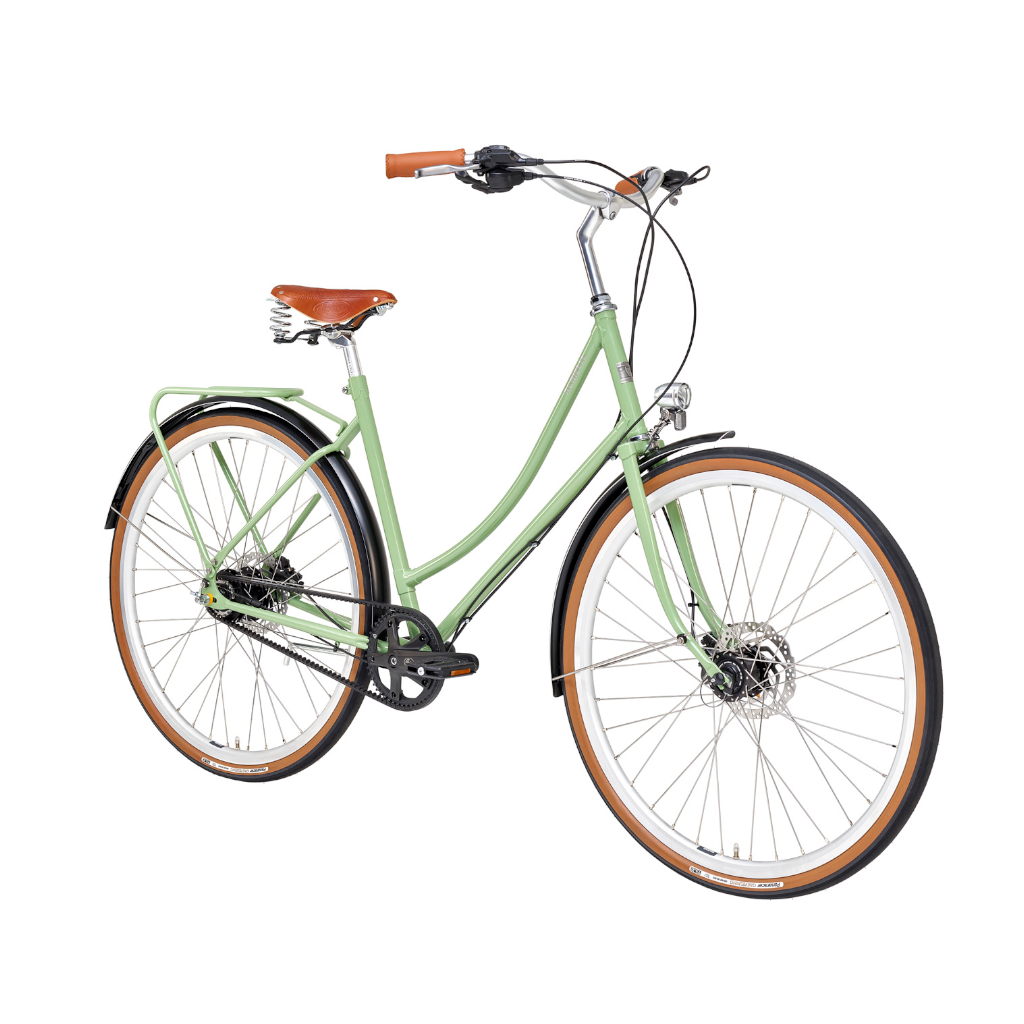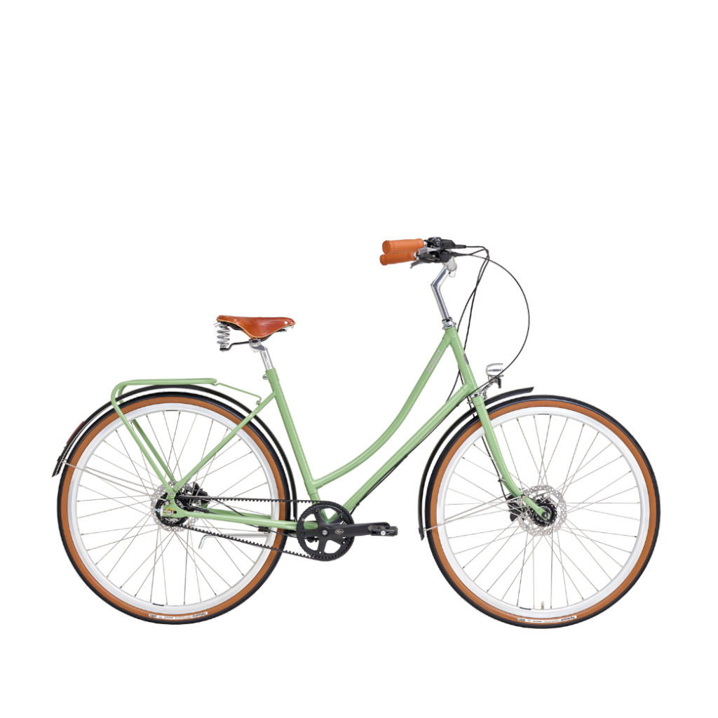 Ef þú ert að leita eftir klassísku hjóli með nútímalegum búnað þá er Ophelie hjólið fyrir þig. Hjólið kemur með átta innbyggðum gírum, vökvadiskabremsum, fram og afturljósi, brettum, bögglabera, Brooks Cambium hnakkur og handföng. Hjólið er með belti í stað keðju.